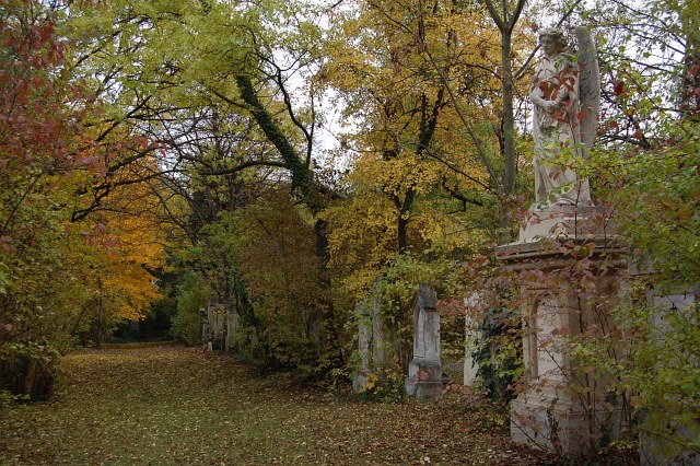 | Der ehemalige Park des Schloss Neugebäude ist heute der Urnenhain am Wiener Zentralfriedhof. |