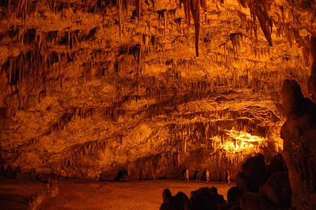Die Höhle hat beachtliche Ausmaße und man sieht schöne Tropfsteinformationen. | |