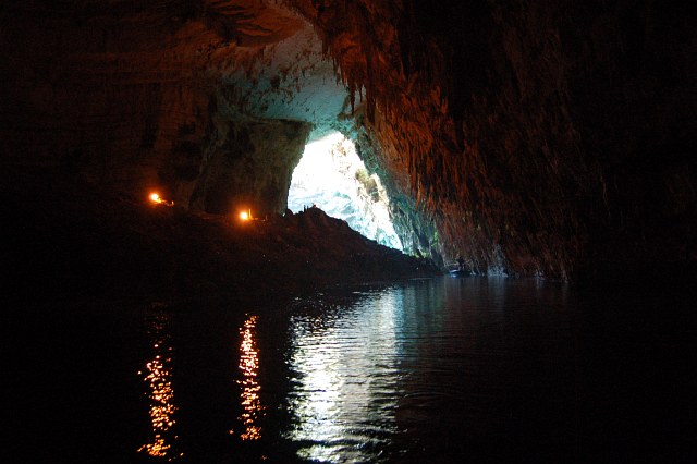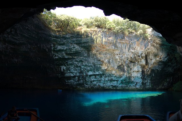 | Ganz in der Nähe gibt es den unterirdischen See von Melissani. Auch das ist eine Karsthöhle, bei der vor Jahrtausenden das Dach eingebrochen ist. |