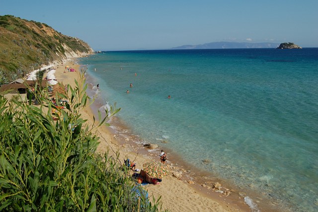 | Dahinter liegt die Bucht Antisamos mit einem herrlichen Sandstrand und einer gepflegten Strand-Taverne wo nur Reggaemusik gespielt wurde. |