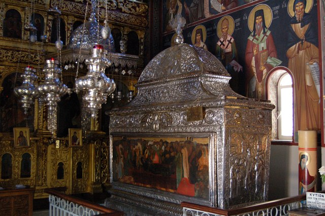 In der alten Kirche finden man auch den Sarg des Gründungsmönches. | |