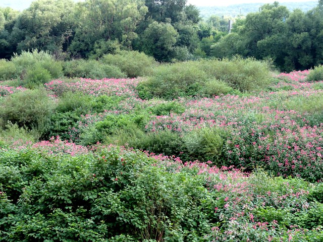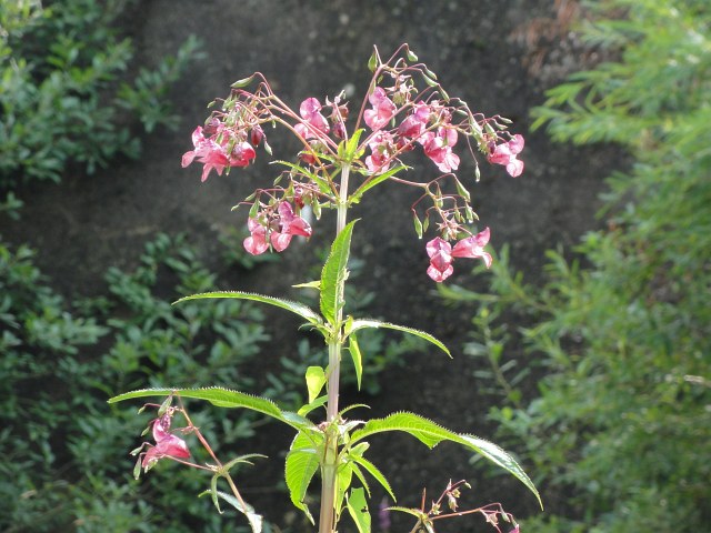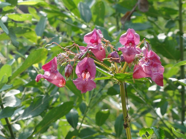| Schließlich konnte ich es identifizieren: Das Drüsige Springkraut, auch Indisches Springkraut. Ein invasiver Neophyt, das heißt eine Pflanze die sich hier ziemlich unkontrolliert vermehrt und die angestammte Vegetation verdrängt. |