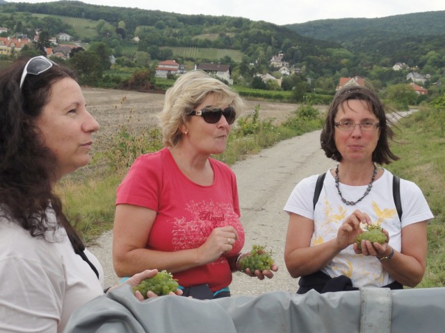 | Gerne erklärt uns der Winzer Ried und Trauben. |