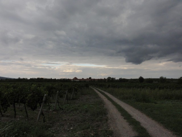 Bedrohliche Wolken. Da sind wir lieber nach Sooß zum Heurigen geflüchtet! |