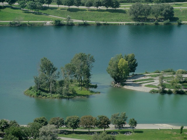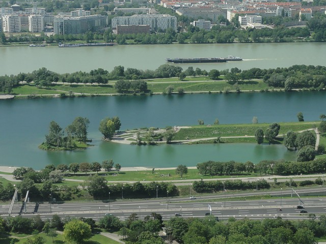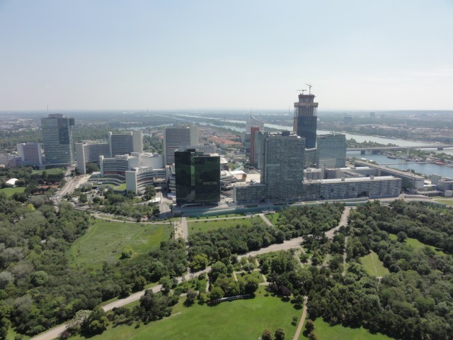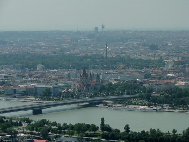 | Reichsbrücke, Mexikoplatz, Spittelau und Postturm "Alfred". |