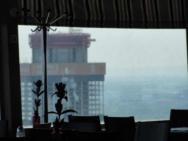 Die Nachbarbaustelle "Viennas highest level" schaut schon Auge in Auge beim Fenster herein. |