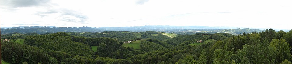 Das erste Ziel war die Kreuzberwarte (633m). Der Rundblick war hauptsächlich steirisch-grün. |