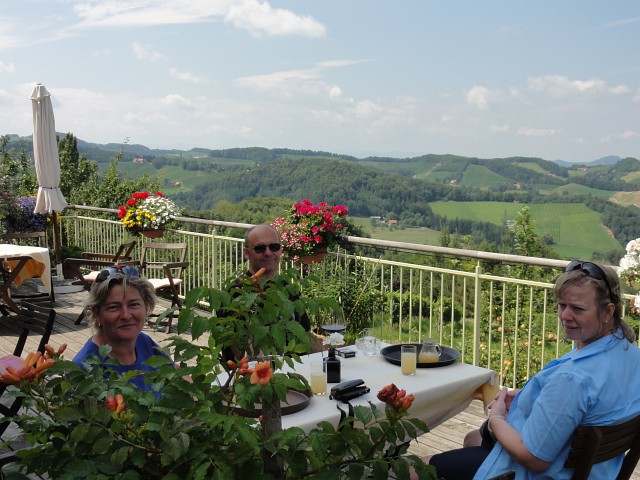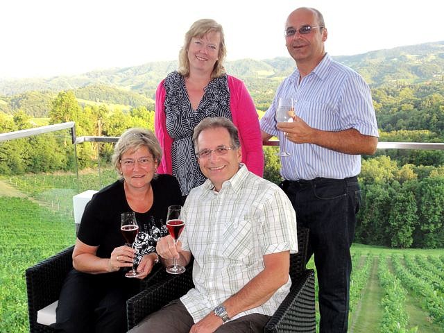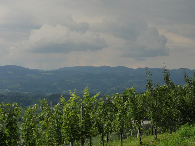 Weinstraße. Das Zimmer beim Weingut Trunk war groß und schön. Vom Balkon hatten wir Ausblick bis weit nach Slowenien. |