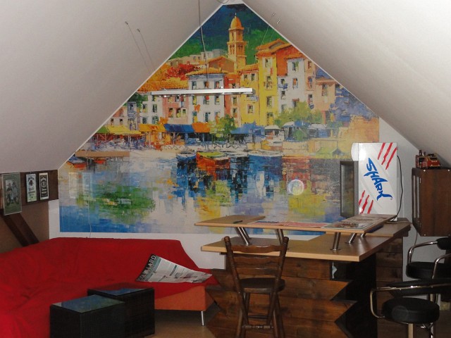 privates Wohnhaus. Davor Hubschrauber fliegen am Trödelmarkt. |