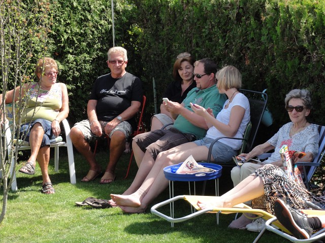 | Nach dem Traditionellen Mittagessen im Gasthaus Futterknecht zogen wir uns zu einer Pause im Garten zurück. |