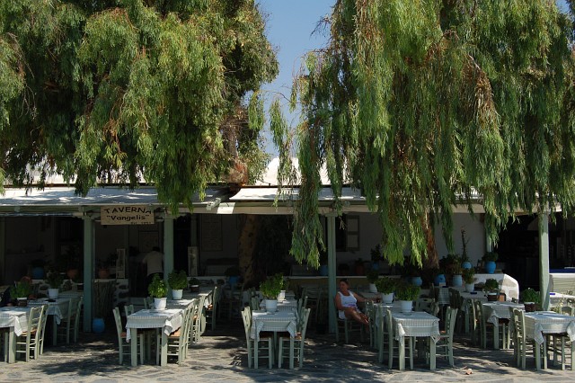Mittagspause am Hauptplatz von Ano Mera. |