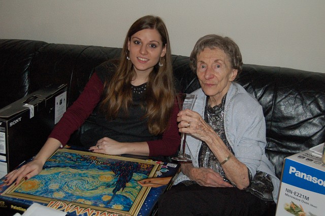 | Oma freute sich über Vanillekipferln und ein neues Familienfoto, und dann fuhren wir zur Bescherung nach Hause. |