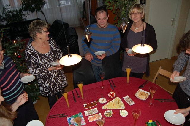 | Am Weihnachtstag brutzelte wieder eine gefüllte Pute im Rohr, aber zuerst als Auftakt Sekt und Antipasti. |