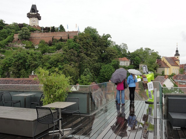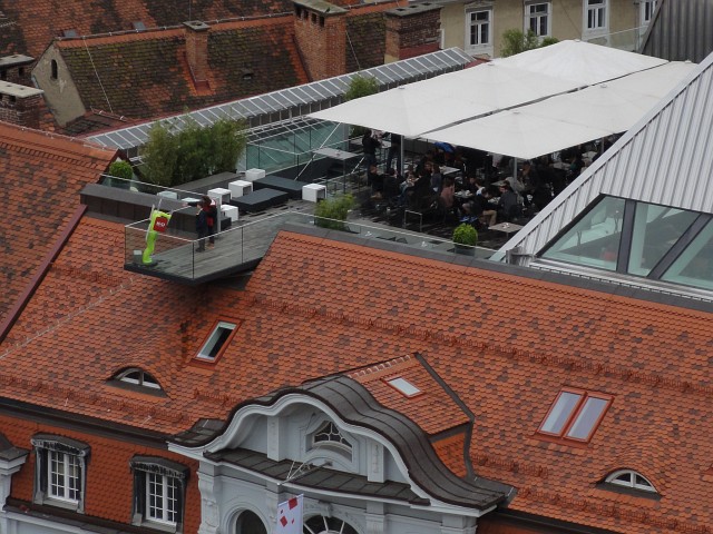 Das Kastner und Öhler Dachcafé vom Schlossberg gesehen. | |