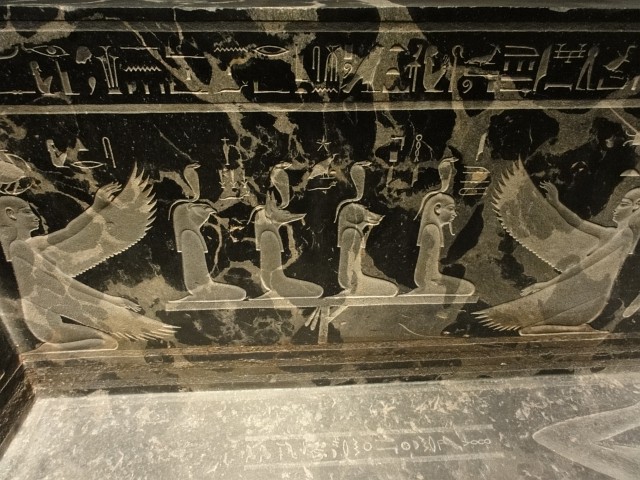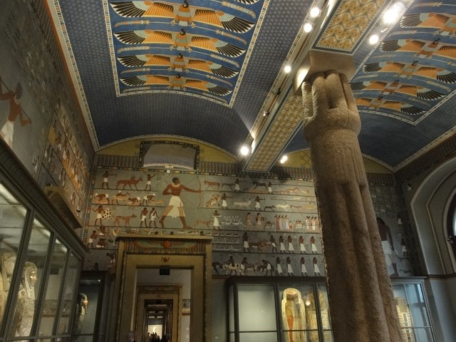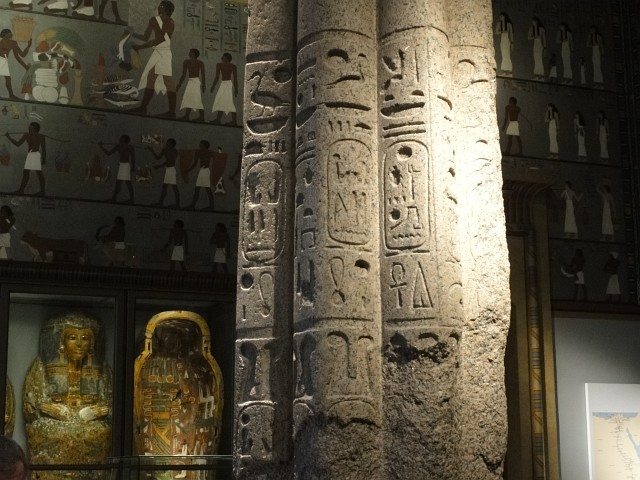 | Geführter Besuch in der Ägypten-Abteilung. Dort erfuhren wir, dass hier einzigartiger Weise die 4000 Jahre alten Säulen direkt in das Bauwerk integriert wurden. |