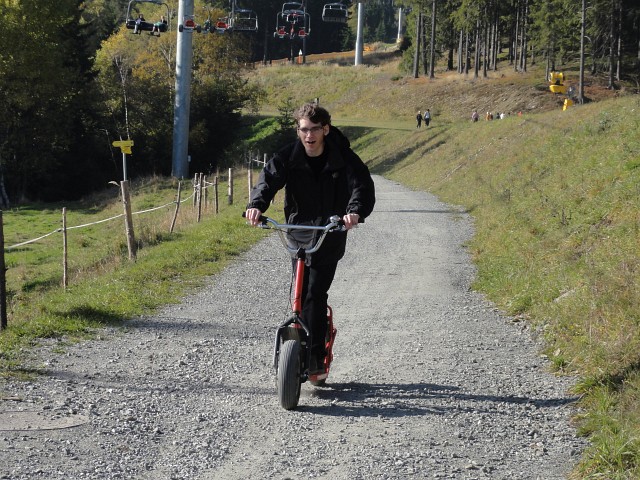 Bergab gings stilgerecht per Roller! |