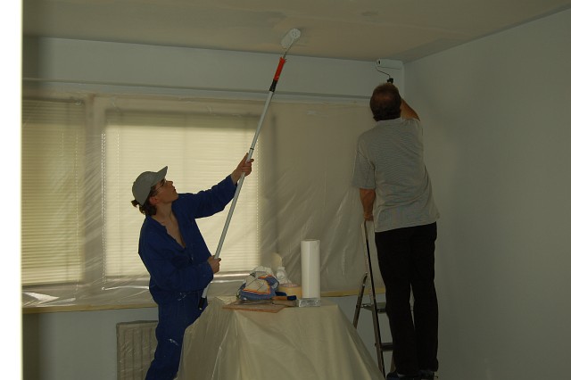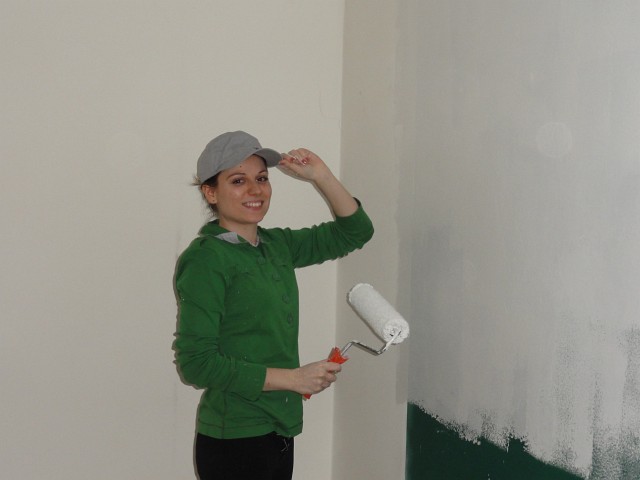 Corinna half fleißig mit, dem Zimmer wieder eine andere Farbe zu geben. | |