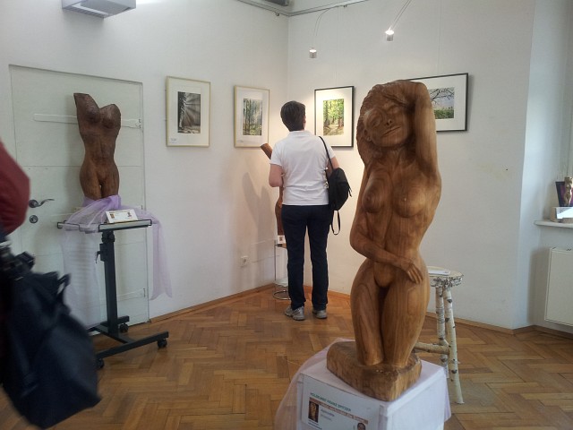 | Mein Kollege Franz Spitzer lud mit dem Kunstverein Stockerau zu einer Vernissage mit 4 Künstlern, wobei er die Holzschnitzereien beistellte. |