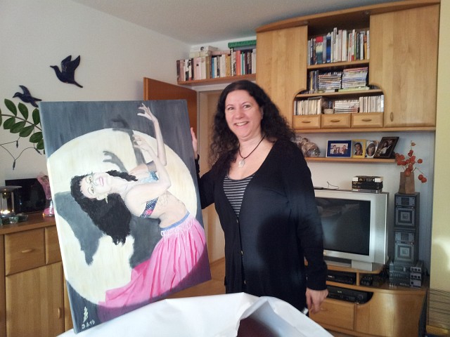 Ilona in ihrer besten Tanzzeit in Acryl auf Leinwand! Nachdem das Bild sofort aufgehängt wurde, dürfte es ihr gefallen haben. |