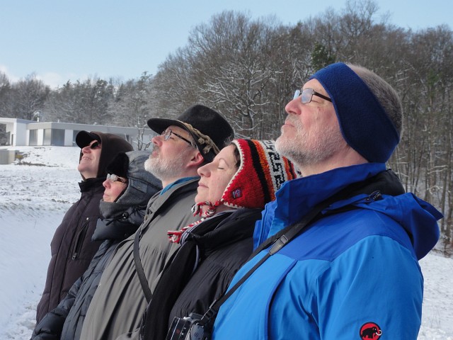 | Im Gegenlicht marschierten wir wieder zurück zu Sauna und Schnapsverkostung. |