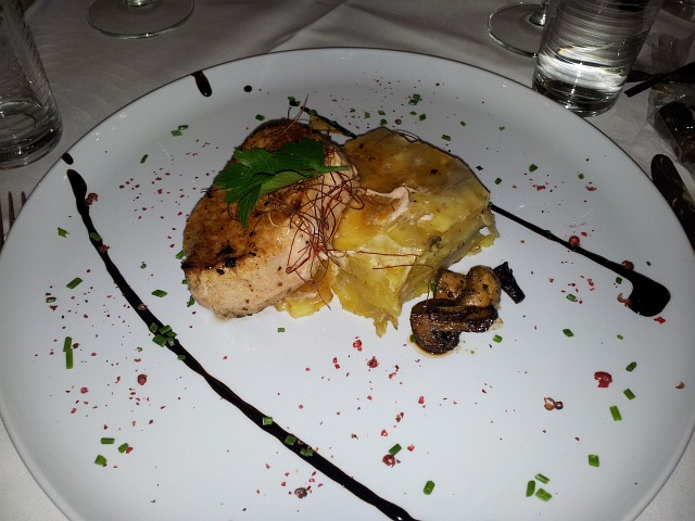 | Zur Begrüßung gabs noch Topfenauflauf mit Beerensoße und Kaffee. |