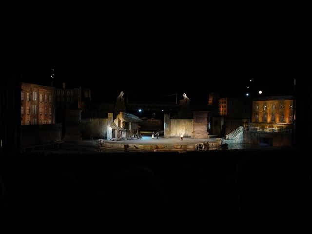 Rechts steigt gerade der Vollmond über die Kulissen und eine Sternenklare Nacht hielt bis nach Mitternacht durch. | |