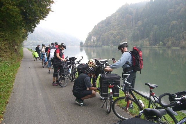 | Wir fuhren im "kleinen Kreis" = 17(!) Radfahrer am Freitag mit den Autos nach Aschach. Am Samstag nach dem Frühstück radelten wir stromaufwärts. |