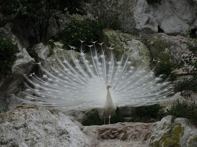 Der letzte weiße Pfau! (Der andere flog einmal zu oft ins Eisbärengehege). |