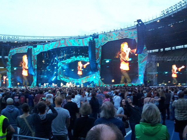 Nach einer endlosen Warteschlange beim Eingang zu den Rasenplätzen war die Vorgruppe schon fast vorbei und hat bei mir eigentlich keinen Eindruck hinterlassen. Als kompetete Begleiter waren Christiane und Gerhard mit mir im Stadion