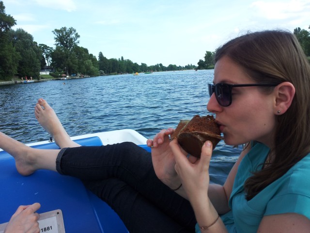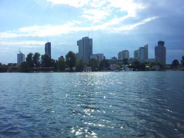 Wir schnappten Corinna und ein Tretboot und stachen in der Alten Donau in die See. | |