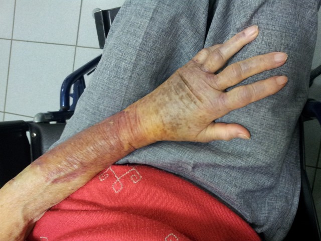 Oberschenkelhals gebrochen. Wir haben sie ins Wilheminenspital gebracht. Sie war anfangs gar nicht ansprechbar, hat sich dann aber wieder etwas erholt. Sie hat noch viel Besuch bekommen und wirkte vollkommen entspannt. |