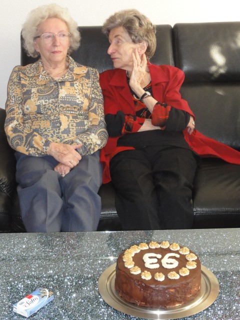 | Sieglinde und ich gratulierten Omama pünktlich am 13.2. mit Blumen, Brötchen und Sekt. |