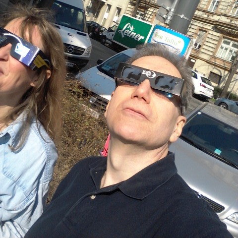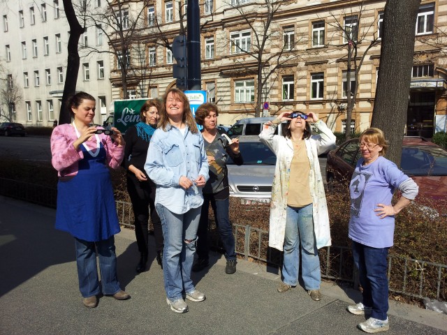 | Gemeinsames Betrachten der Sonnenfinsternis am 20. März 2015 bei Malkurs Brigitte Gauss in der VHS |