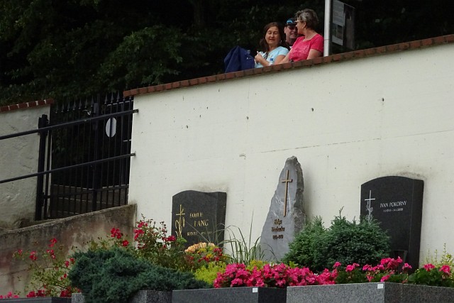 Zwischenstopp an der Friedhofsmauer | |