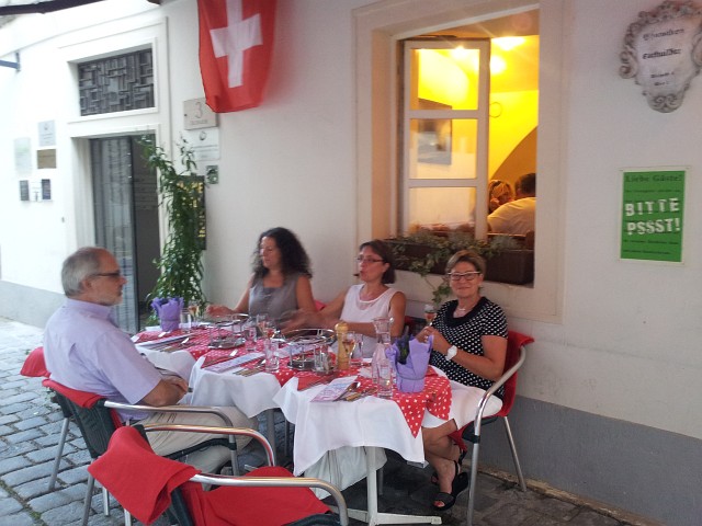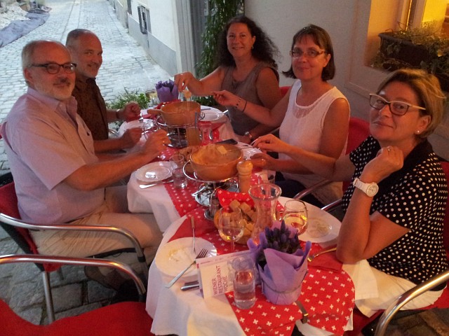 | Christine ortete zielsicher ein Werbeangebot für Käsefondue im schweizer Restaurant Camäleon in der Blutgasse. |