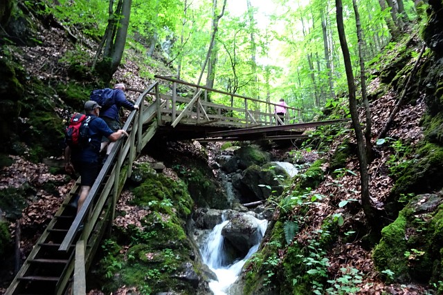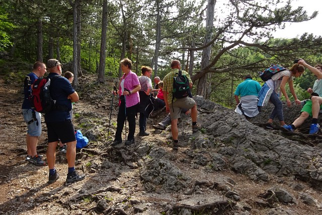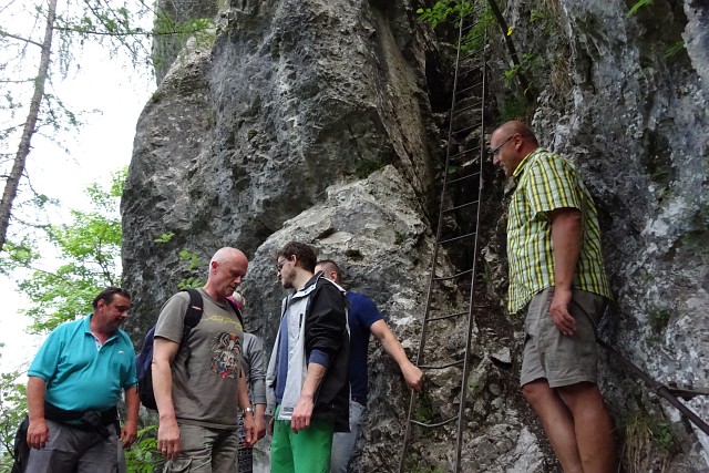 | Am Ende des Steiges trafen wir wieder auf Team B, das außen herum gegangen war. |