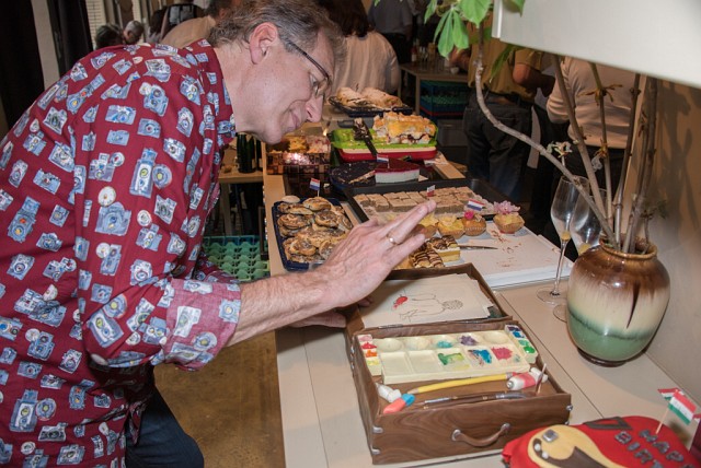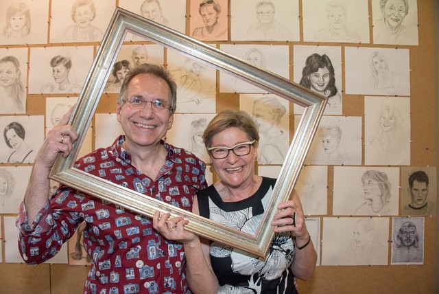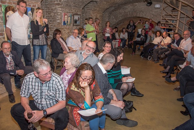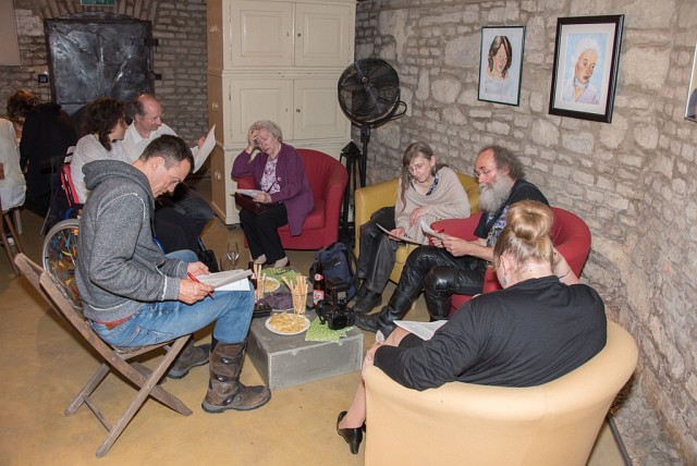 | Der Künstler (bzw. Corinna und Sieglinde) luden zur Überraschungs-Vernissage ins Offene Atelier Lebenskunst |