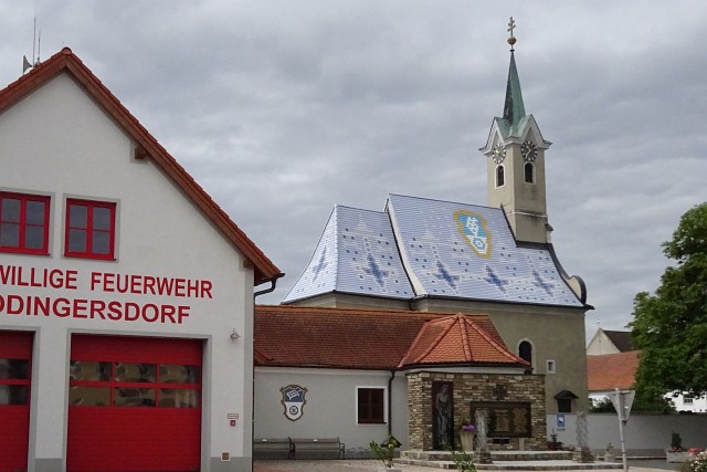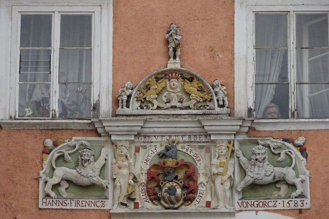 | Im Erdgeschoß gibt es eine alte Kapelle, der Rest ist Rathaus. |
