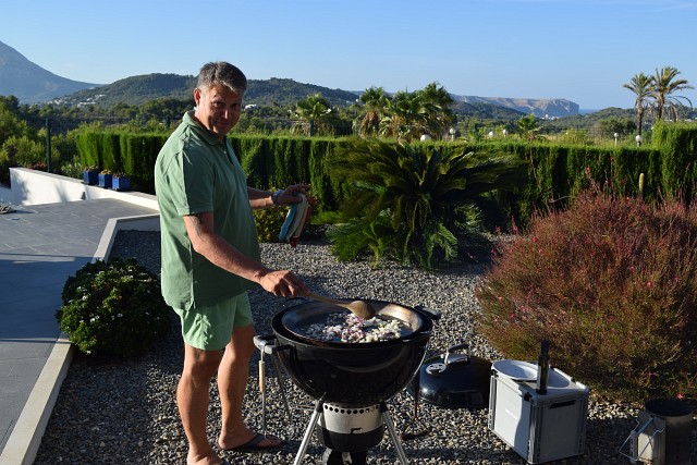 | Edi briet eine vegetarische Paella am Webergrill. |