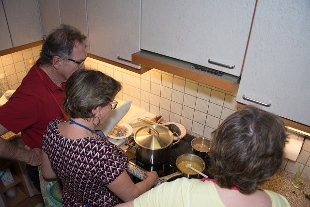 Nach langer Pause war endlich wieder eine Kochparty angesagt. Etwas unbeholfen suchten wir schon nach dem richtigen Geschirr. |