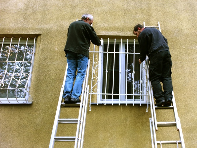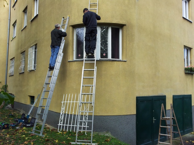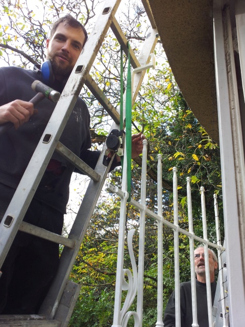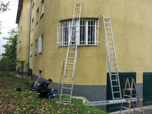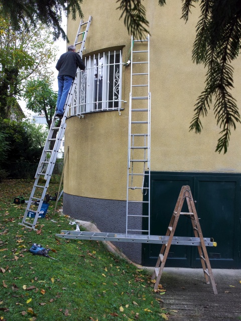 | Die Montage hab ich dann wieder Georg und Toni überlassen, einer muss ja schließlich die Leiter halten! |