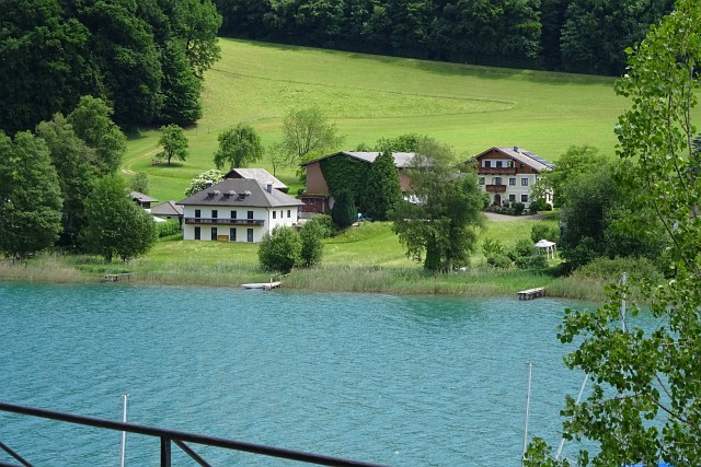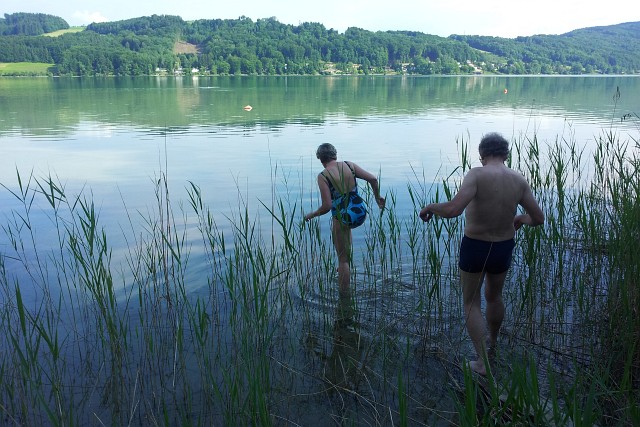 Der Wetterbericht war nicht ganz so toll und so nutzten wir den Sonnenschein führ eine Schwimmrunde im herrlichen Mattsee. Das Badegrundstück gehörte zum Gasthof. | |