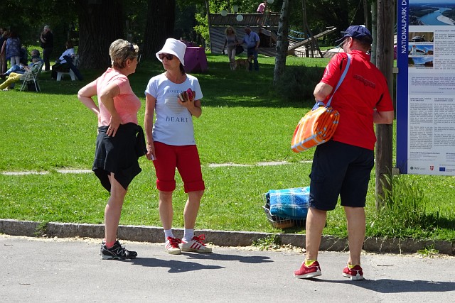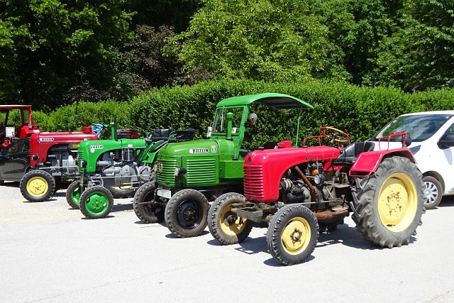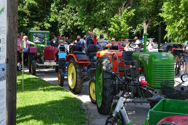 | Bei perfektem Fahrradwetter radelten wir von der ÖMV bis zum Uferhaus. Dort fand diesmal eine Oldtimer-Traktor-Parade statt. |