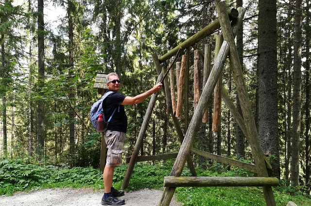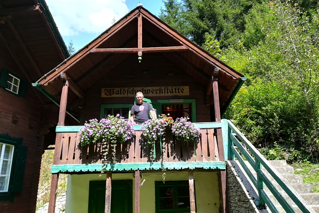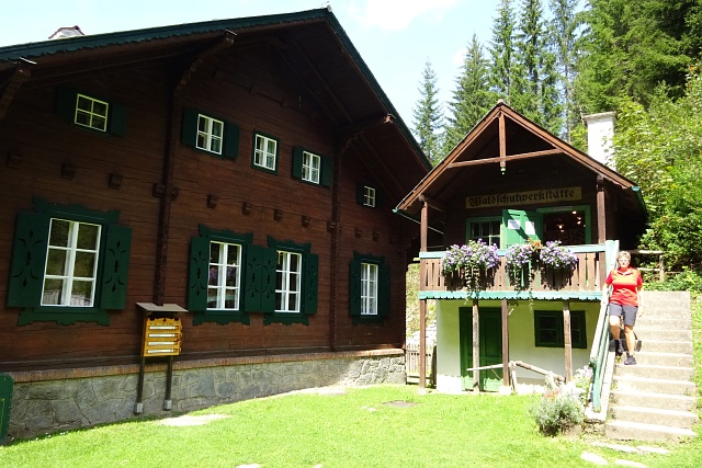Hotel in Fischbach gebucht. Auf der Fahrt dort hin sahen wir einen Pfeil nach Roseggers Waldheimat. Als Kulturinteressierte Urlauber machten wir einen Zwischenstopp bei der Waldschule in Alpl |