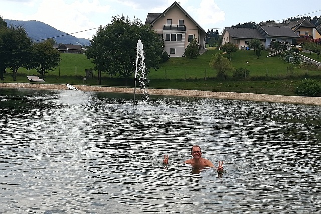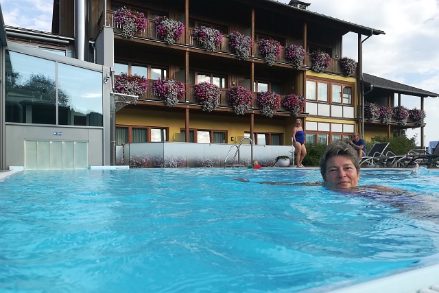 | Gleich vor dem Hotel lag der Minigolfplatz und der Bio-Schwimmteich. |