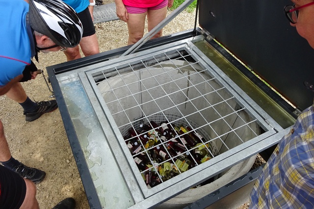 | Per Handkurbel holt man die Getränke aus dem kühlen Brunnen und zahlt in die Kassa. |