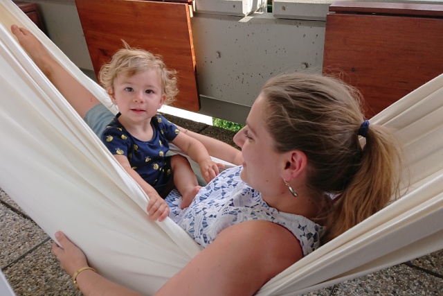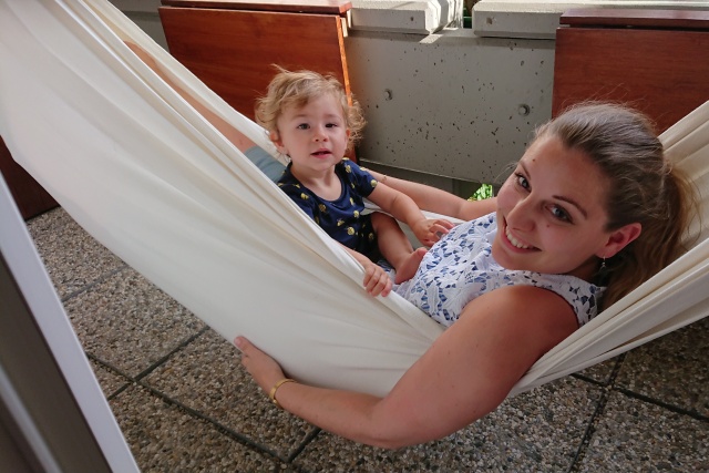| Corinna pausierte mit Amelie auf der Hängematte. |