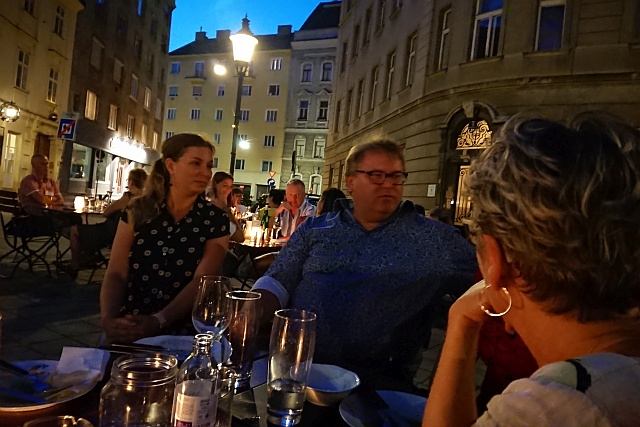 Dann spazierten wir zum "Wulfisch", in der Leopoldsgasse 14, einem "Stück Hamburg in Wien" Hier wurde eine Sammlung von Herings- und Krabbensalaten serviert, passend dazu tranken wir Jever und Astra Bier. Es folgte eine Weinverkostung im "wein.laden" beim Karmelitermarkt. |