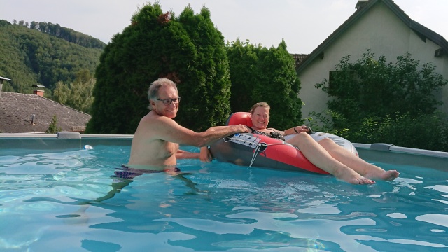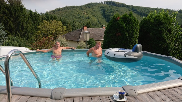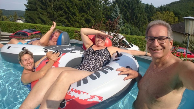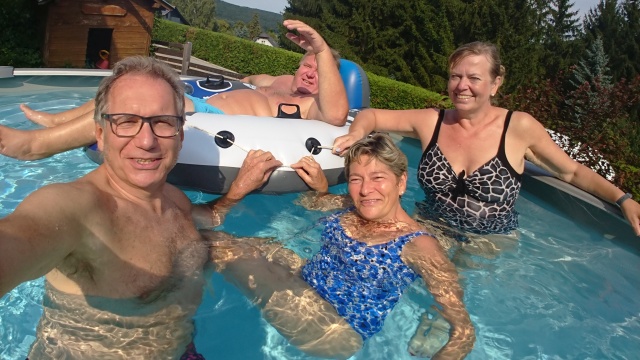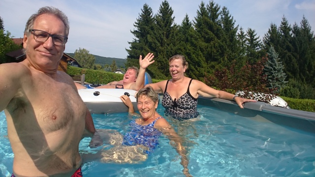 | Schon oft eingeladen schafften wir es, bei ausklingenden Sommer zur Poolparty bei Monika und Andi zu kommen. |