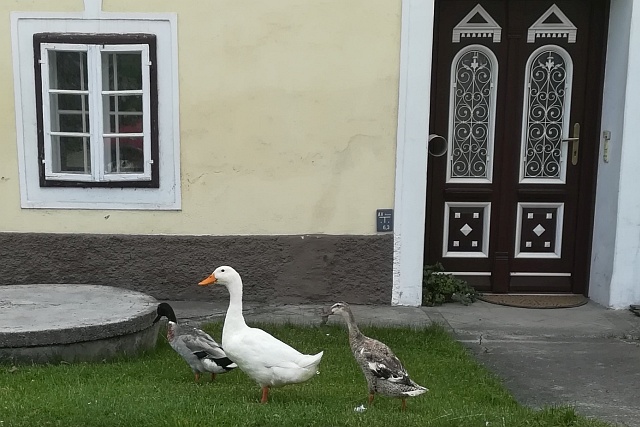Die drei Enten querten am Rückweg die Straße und vertrauten voll darauf,